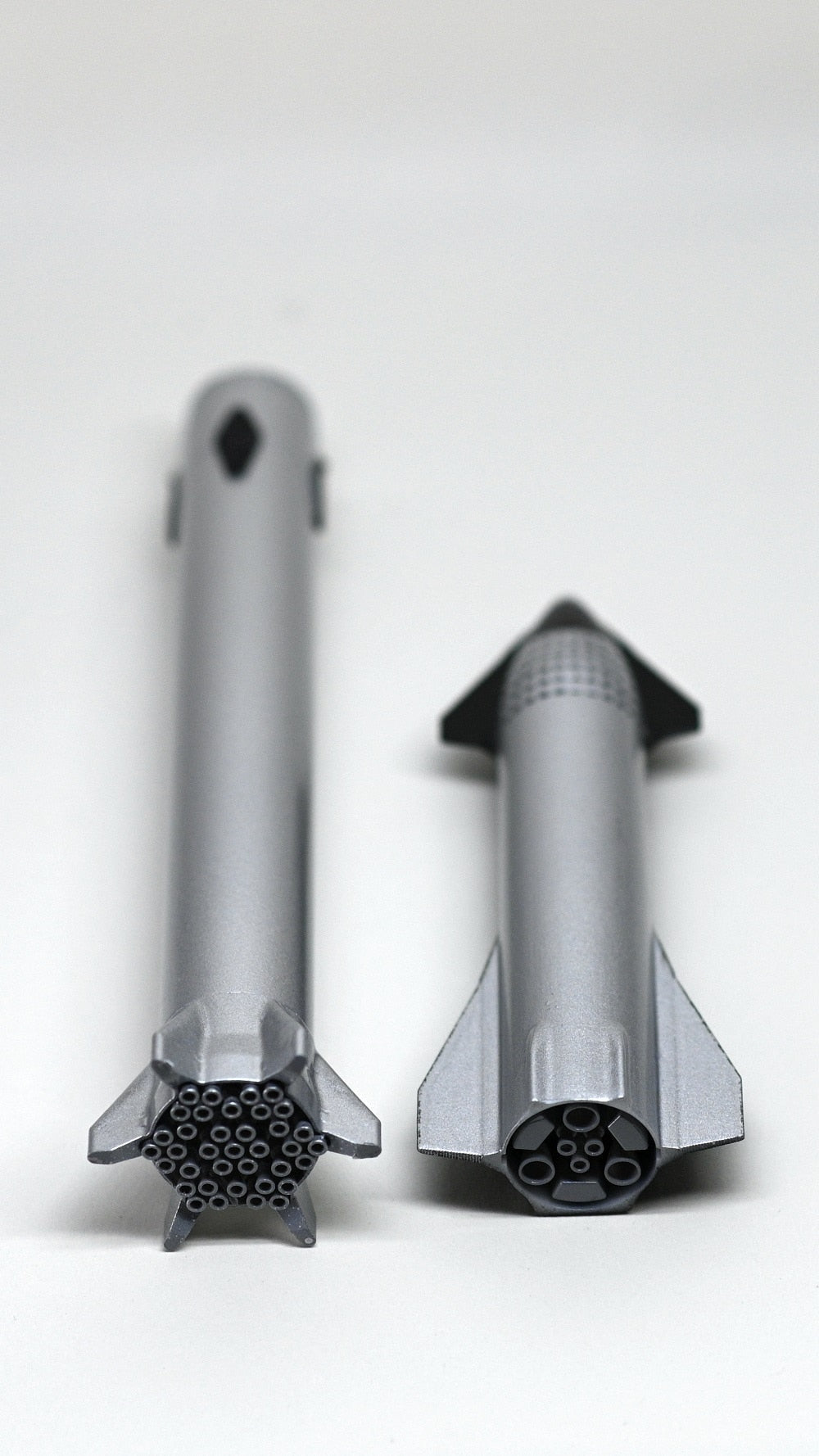 This model is a highly simulated SpaceX starship rocket model. The main body of the first-class super heavy booster is made of precision aluminum alloy tubes. The second-class starship is embedded with reinforced aluminum alloy tubes. The rest of the rocket materials are made of high-quality imported resin. Excellent laser forming ability and long-lasting preservation