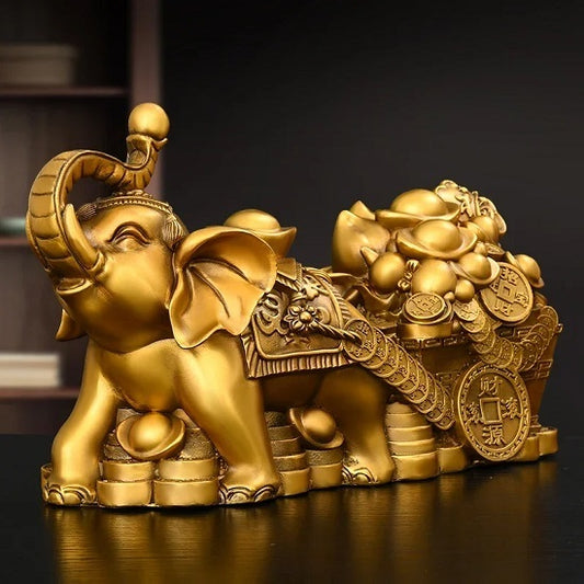Bronze Fortune Elephant Pulling Gold to Your Home For Welth, Happiness and Prosperity