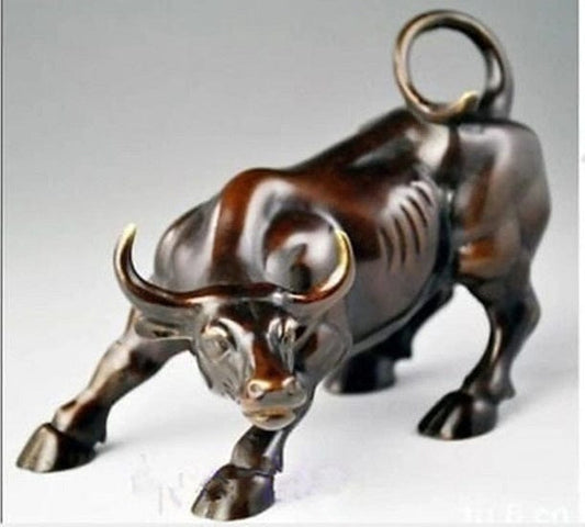 Feng Shui Cooper Brown Wall Street Bull Statue Enhance Wealth and Success