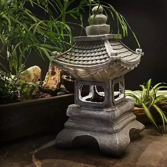 Pagoda Statues Outdoor Solar Powered Statue Japanese Garden Decor Outdoor Zen Garden Lantern Flickering LED Garden Light