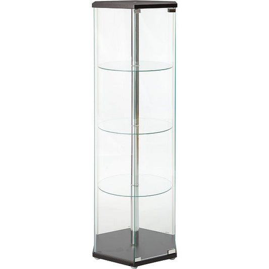 Private Collection Corner Glass Wine and Liquor Bar Cabinet Hexagon Shaped Display with Glass Doors Shelfs