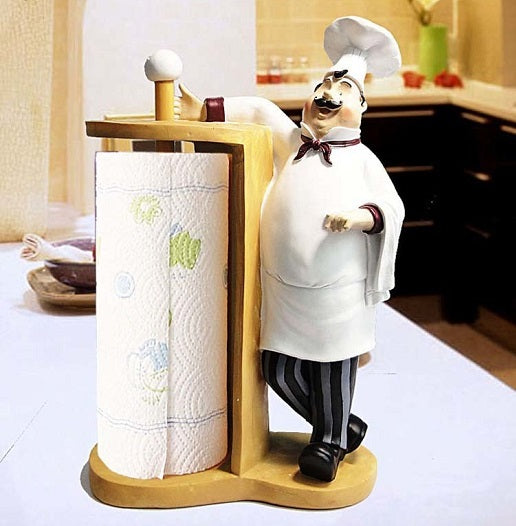 Kitchen French Chef Paper Towel Holder Figurines Statues