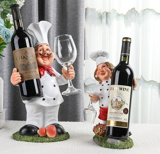 Kitchen French Chefs Delivery Wine Bottle Rack Holders Figurines Statues