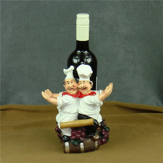 Kitchen French Double Chefs Wine Bottle Rack Holders Figurines Statues