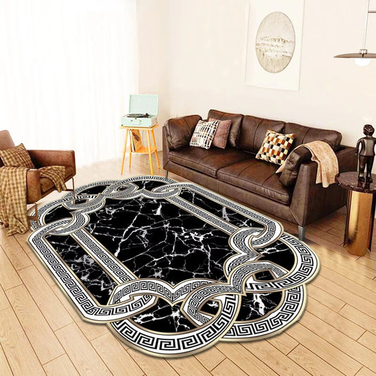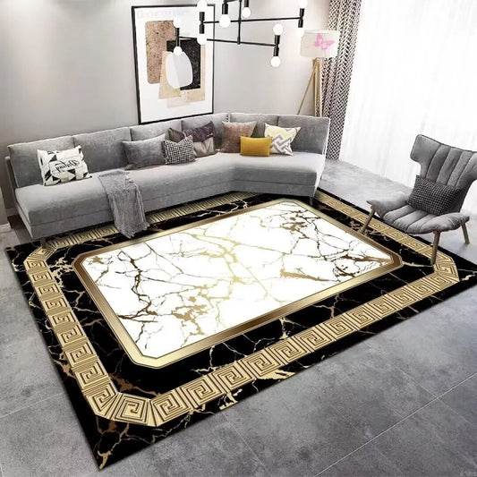 Marble Symphony Luxury Modern Ornament Black Gold and White Carpet Luxury Non-Slip Floor Mat Rug Carpet