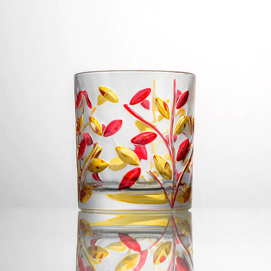 Four Seasons Italian Murano Style Luxury Hand Cut and Painted Colorful Stain lead Free Crystal Free Whisky Vodka Cocktail Glasses