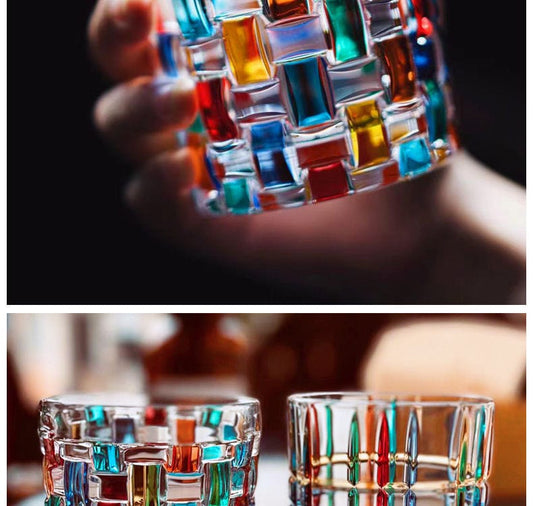 Rainbow Italian Murano Style Luxury Hand Cut and Painted Colorful Stain lead Free Crystal Free Whisky Vodka Cocktail Glasses