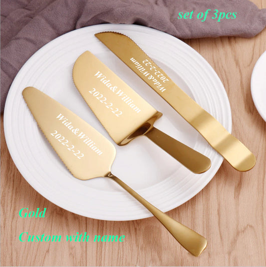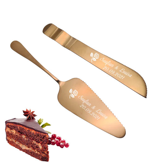 Laxury Bride and Groom Customisable Rose Gold Cake Knife and Cake Shovel and Baking Tool Set