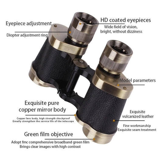 8X30 Military Binoculars HD High Power Low Light Night Vision FMC Broadband Coating BAK4 Prism Pure Copper Powerful Binoculars