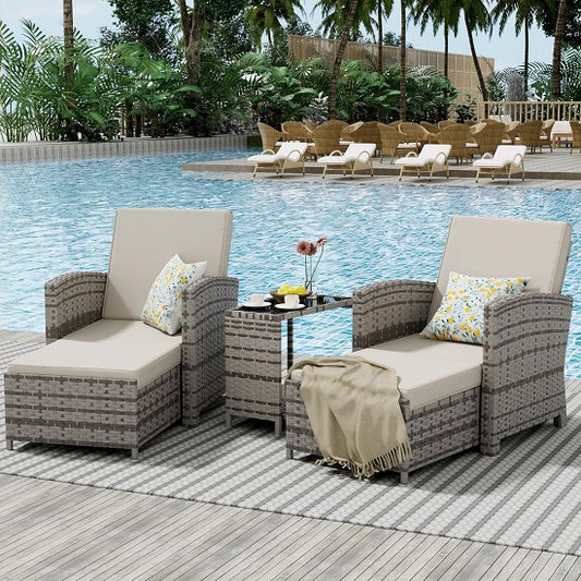 5 Piece Outdoor Patio Poolside Wicker Chairs with Ottomans and Table Set