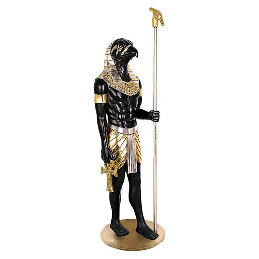 Life-Size Horus Egyptian Grand Ruler Hand Painted in Faux Ebony and Real Gold and Silver Statue