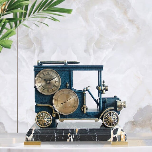 Vintage Automobile Car Ford T-4 Desktop Quartz Alarm Clock With Thermometer and Roman Numeral Display
