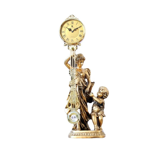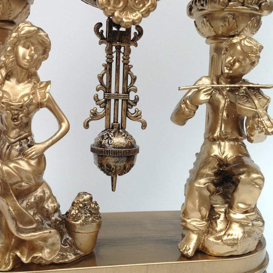Vintage Pendulum Table Clock Golden Statues and Musical Theme