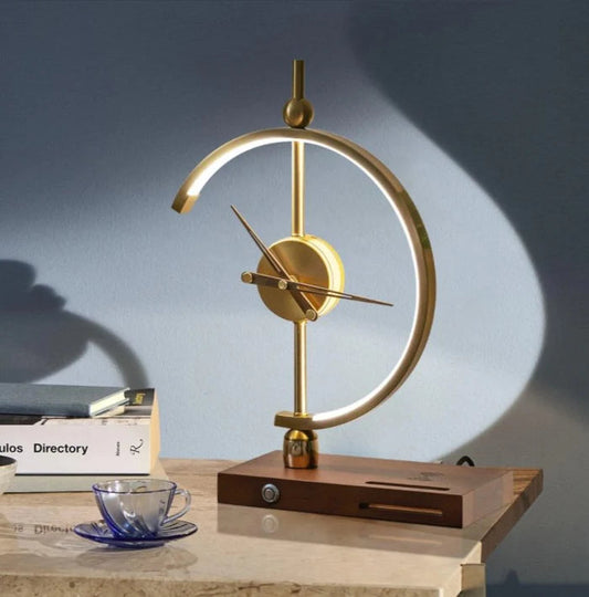Art Deco Sculpture Tabletop Clock Lamp with Wirless Charger