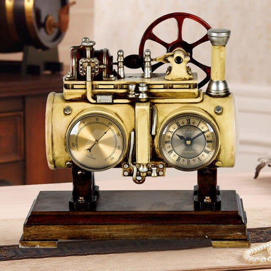 Retro Vintage Steam Engine Desktop Quartz Alarm Clock With Thermometer and Roman Numeral Display