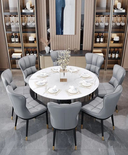 Dining Table Set for 6 with Artificial Marble Tabletop and 6 Pu Leather Cushioned Chairs