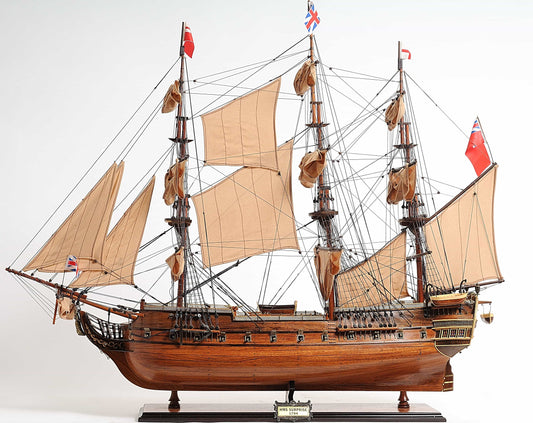 HMS Surprise British Royal Navy Frigate Tall Ship Portrayed in the Movie Master and Commander Wood Model Sailboat Large With Floor Display Case