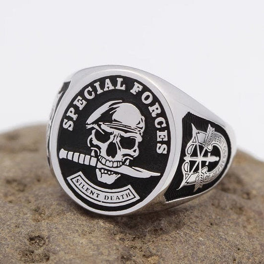 U.S Army Special Forces Green Beret Skull Rings for Men Silent Death