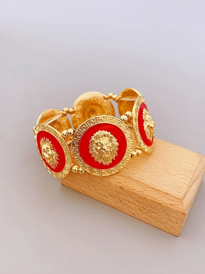 Unique Gold Plated Six Lion Heads Braided Bracelet