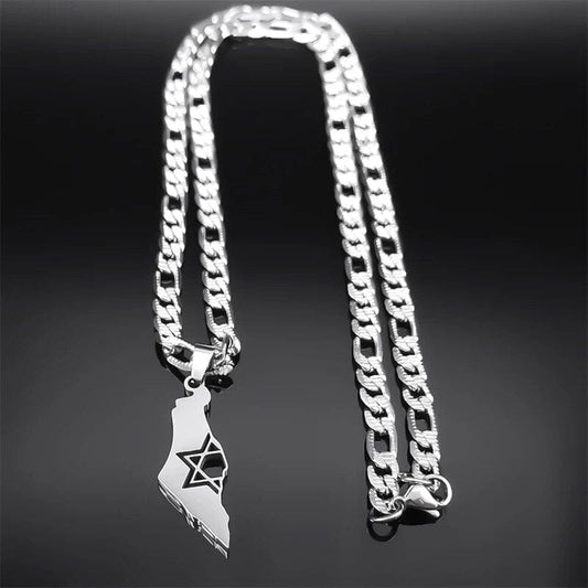 State of Israel with Star Of Davide Pendant Necklace