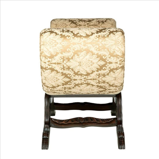 European Style Hand Carved Solid Mahogany Rolled Arm Bench