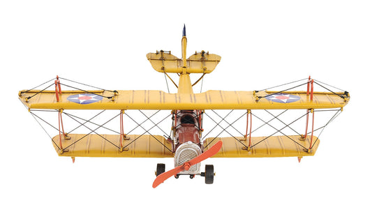 Airplane Yellow Curtiss JN-4 Jenny Biplane Deck Top Metal Model
