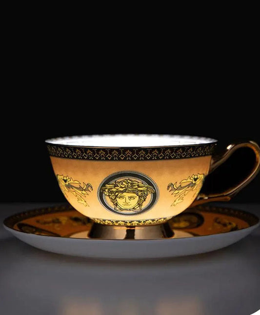 Luxury Versace Style Gold Plated Royal Classic Coffee and Tea Set Bone China Porcelain Set for One