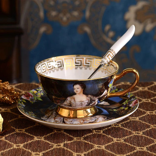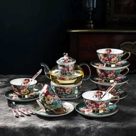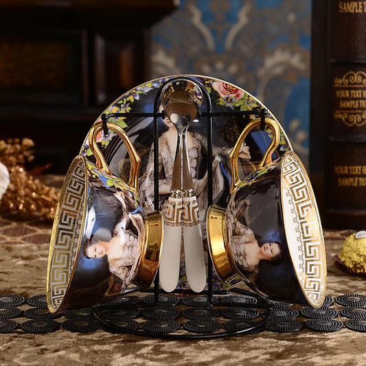Royal Court Cofee and Tea Luxury Porcelain Set With 24K Gold Plated For Six with Spoons