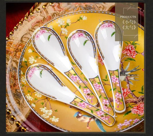 Luxury Golden Flower Style Hand Made Fine Porcelain Dinner 70 pieces Set