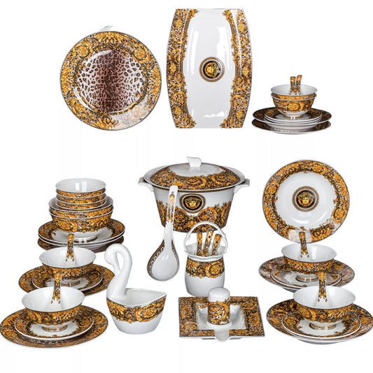 Luxury Versace Golden Medusa Head Style Glazed Gold-edge Hand Made Fine Porcelain Dinner 60 pieces Set