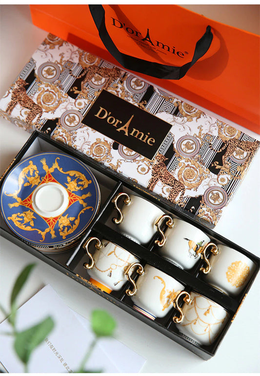 Leopard Style Luxury Coffee and Tea Porcelain 24 Karat Gold Plated Sets For Six