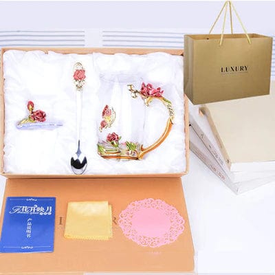 Transparent Vintage Enamel Glass Coffee Tea Mug Red Roses Heat-Resistant Cup Gift Sets Set with Spoon,Cover and Coaster