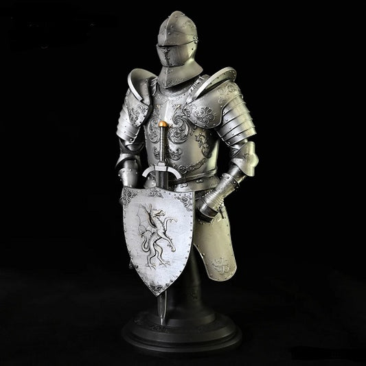 Ancient Medieval Elite Armour Knight with Sword and Shield Collection Desktop Statue