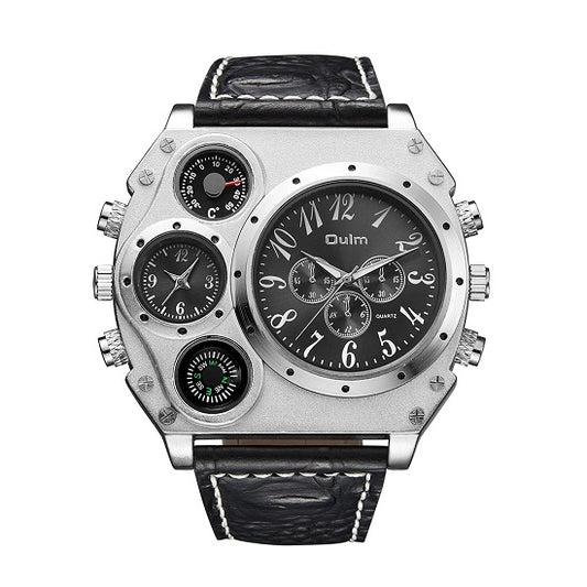 Mens Oulm Unique Top Brand Design Multi-function Multiple Time Zone Compas Luminous Water resistance Sports Chronograph Quartz Watch