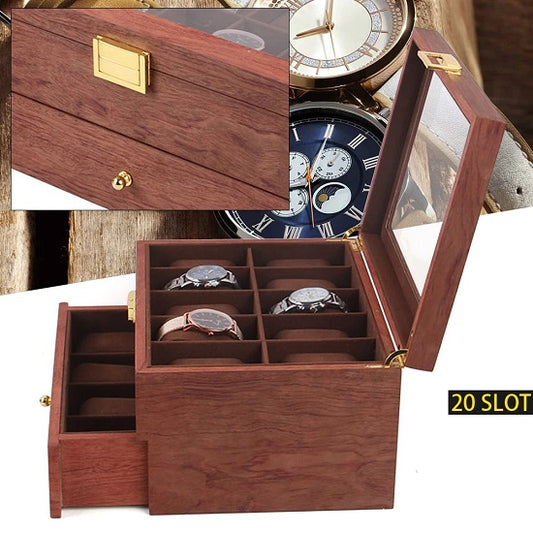 Watch Rosewood Display Storage Case Double Drower Orgonizer for 20 Slots