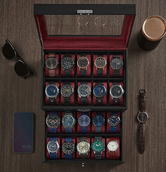 Watch Glass Lid Stylish Lockable Display Storage Case Black Double Drower Orgonizer for 20 Slots