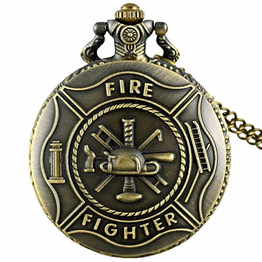 FIRE Fighter Quartz Pocket Watch Bronze Firemen With Necklace Chain