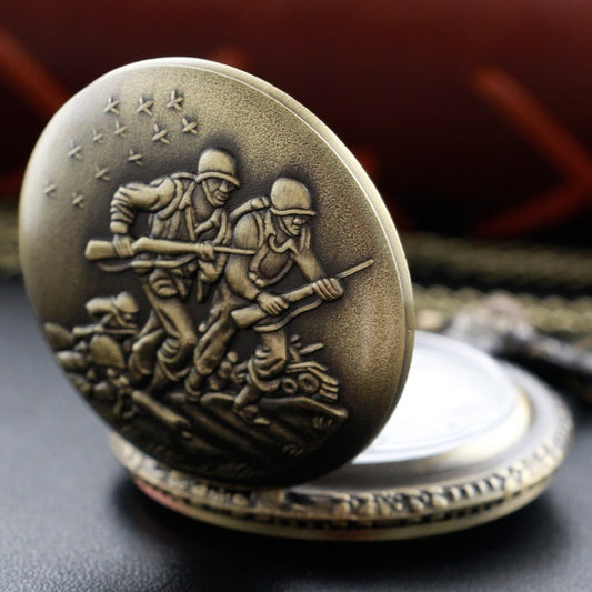 United States of America War Memorial Soldier Emblem Bronze Quartz Movement Pocket Watch