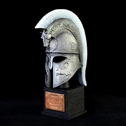 Ancient Spartan Officer Silver Color Helmet Desktop Statue