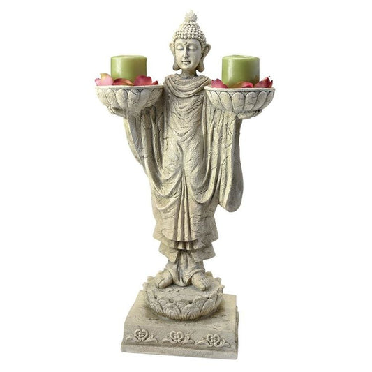 Buddha with Two Candle Holder Bowls Zen Garden Statue