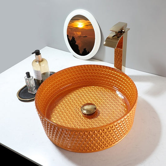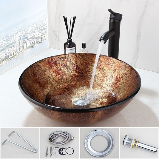 Scrub Victory Glass Bowl Round Tempered Glass Bathroom Washbasin and Faucet Set Combination