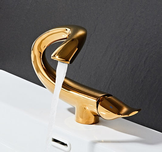 Contemporary Solid Brass Dinosaur Shape Bathroom Basin Single Hole Faucet Deck Mounted