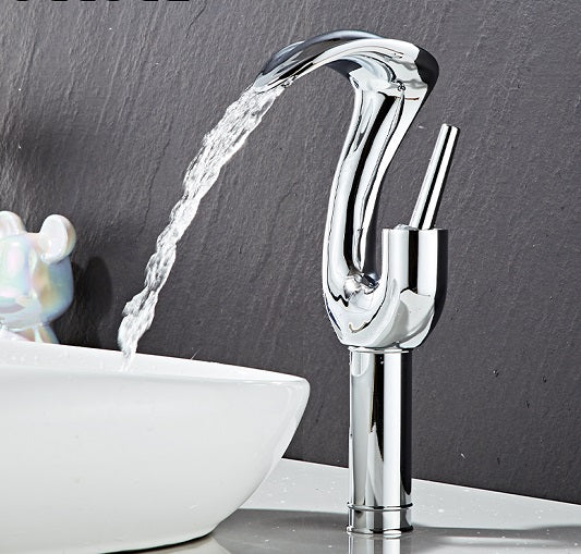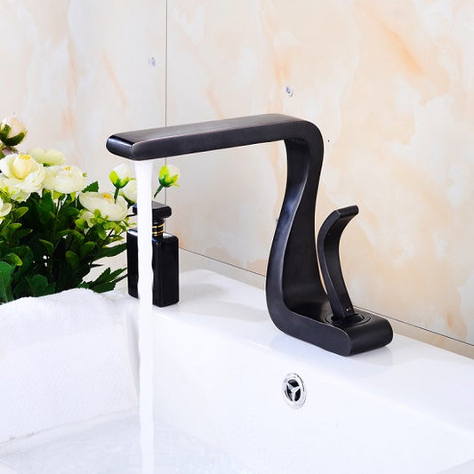 Swan Style Z Shape Solid Brass Bathroom Basin Mixers Single Handle Faucets Combination