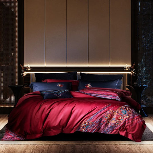 Luxury Dark Charry Paradise Duvet Set 100% Egyptian Cotton With Embroidery and Pillowcases