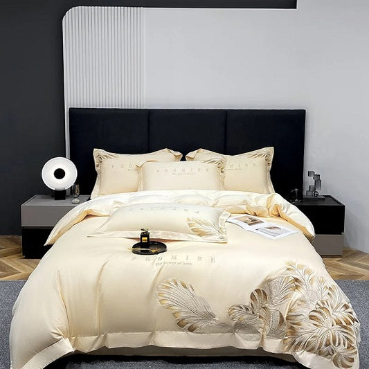 Luxury bedding sets are high-end collections of bedroom linens that provide both exceptional comfort and elegant design. These sets typically include a combination of sheets, duvet covers, pillowcases, shams, and sometimes decorative elements like bed skirts or throws. They are made with premium materials and crafted to deliver superior softness, durability, and a touch of sophistication.Shop Our Unique Luxury Bedding and Accesuaries Made from the best of Egyptian Cotton with exellent quality and wonderful embroidery.