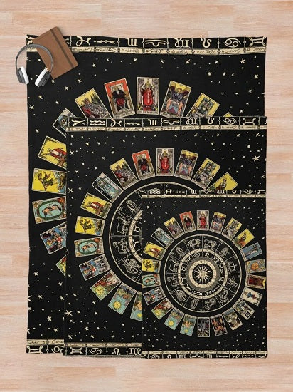 Wheel of the Zodiac, Astrology Chart & the Major Arcana Tarot Throw Blanket for Chair Bed and Sofa
