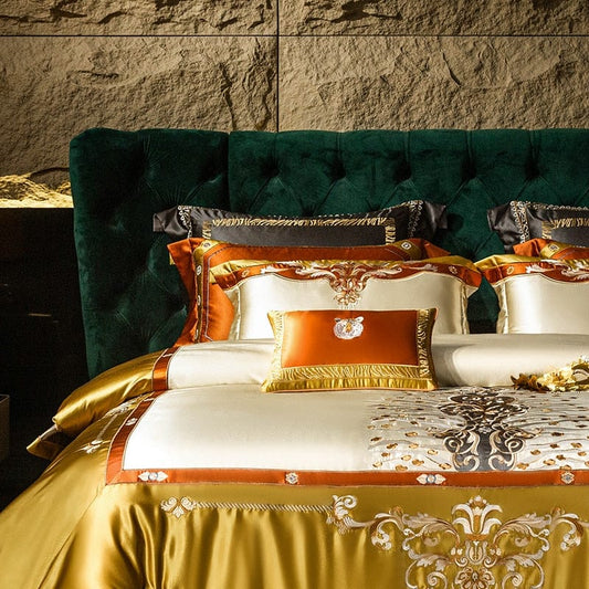 Luxury Spanish Royal Palace Style Egyptian Cotton Duvet Bedding Set with Embroidery