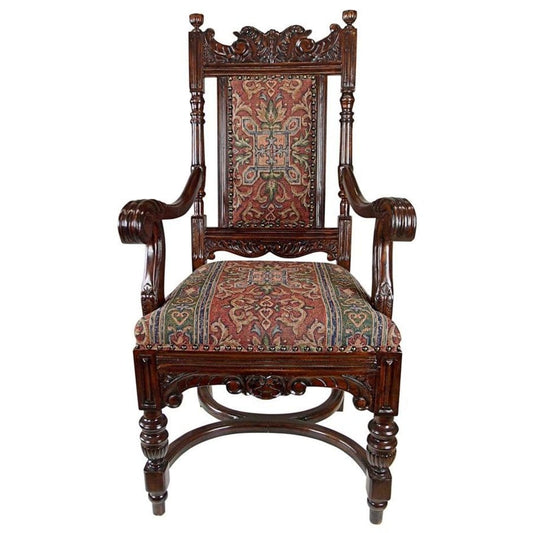 Hand Carved Solid Mahogany Replica Gothic Cathedral Arm Chair