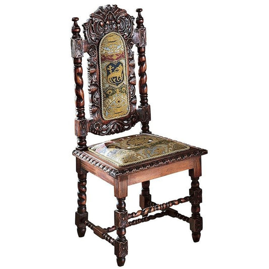 Medieval Gothic English Style Hand Carved Mahogany Dining Chair