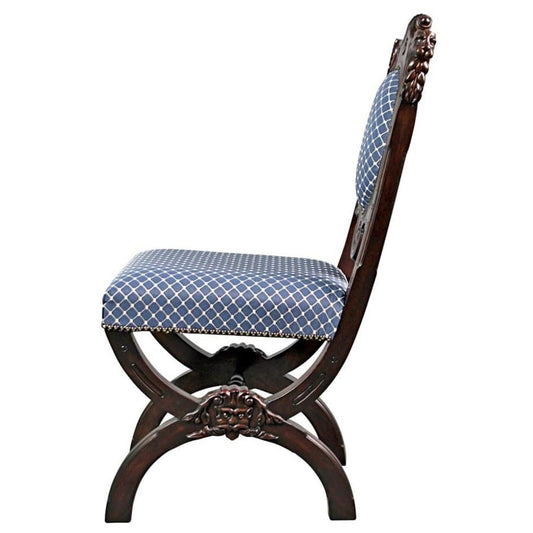 Medieval Renaissance Style San Lorenzo Hand Carved Solid Mahogany Cross Frame Armchair